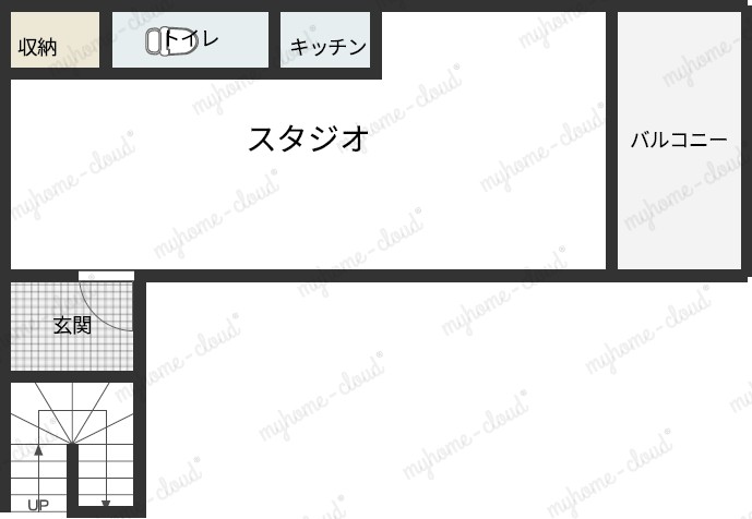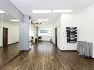 スペースの広さとしてはスタジオ、トイレ、キッチン、玄関含めて約30㎡(縦7.5m、横4m。高2.35m)です。ダンス可能なスタジオ部分の広さは、約26平米、高さ2.35mとなります。