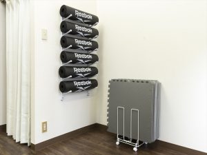 備品としてBluetoothスピーカー、折りたたみ椅子、ヨガマット、ジョイントマット、wifiも用意しております。