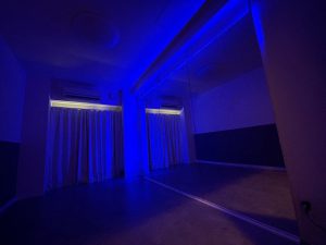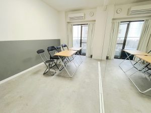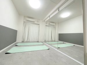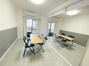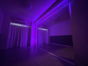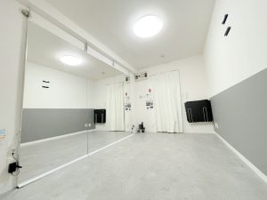 スペースの広さとしてはスタジオ、トイレ、キッチン、玄関含めて約14㎡です。ダンス可能なスタジオ部分の広さは、約9㎡で縦4m、横2.5m、高さ2.35mとなります。