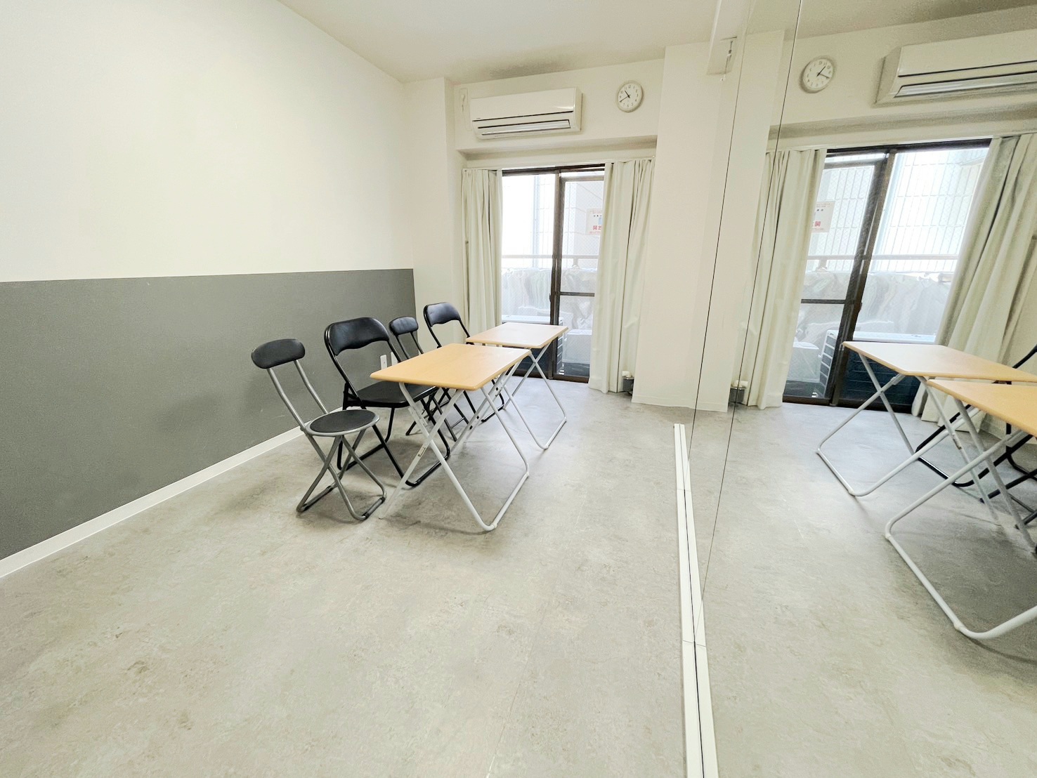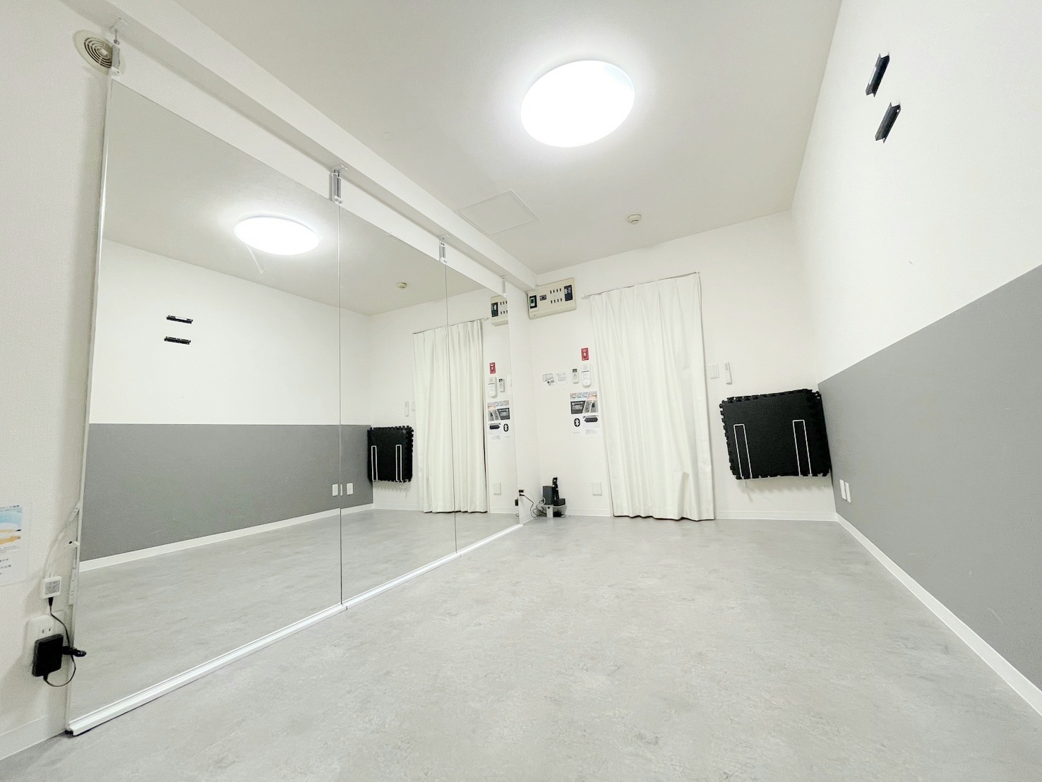壁の一面にパネルミラー(90×180)を設置しており、鏡を見ながらダンス・お芝居等可能です。